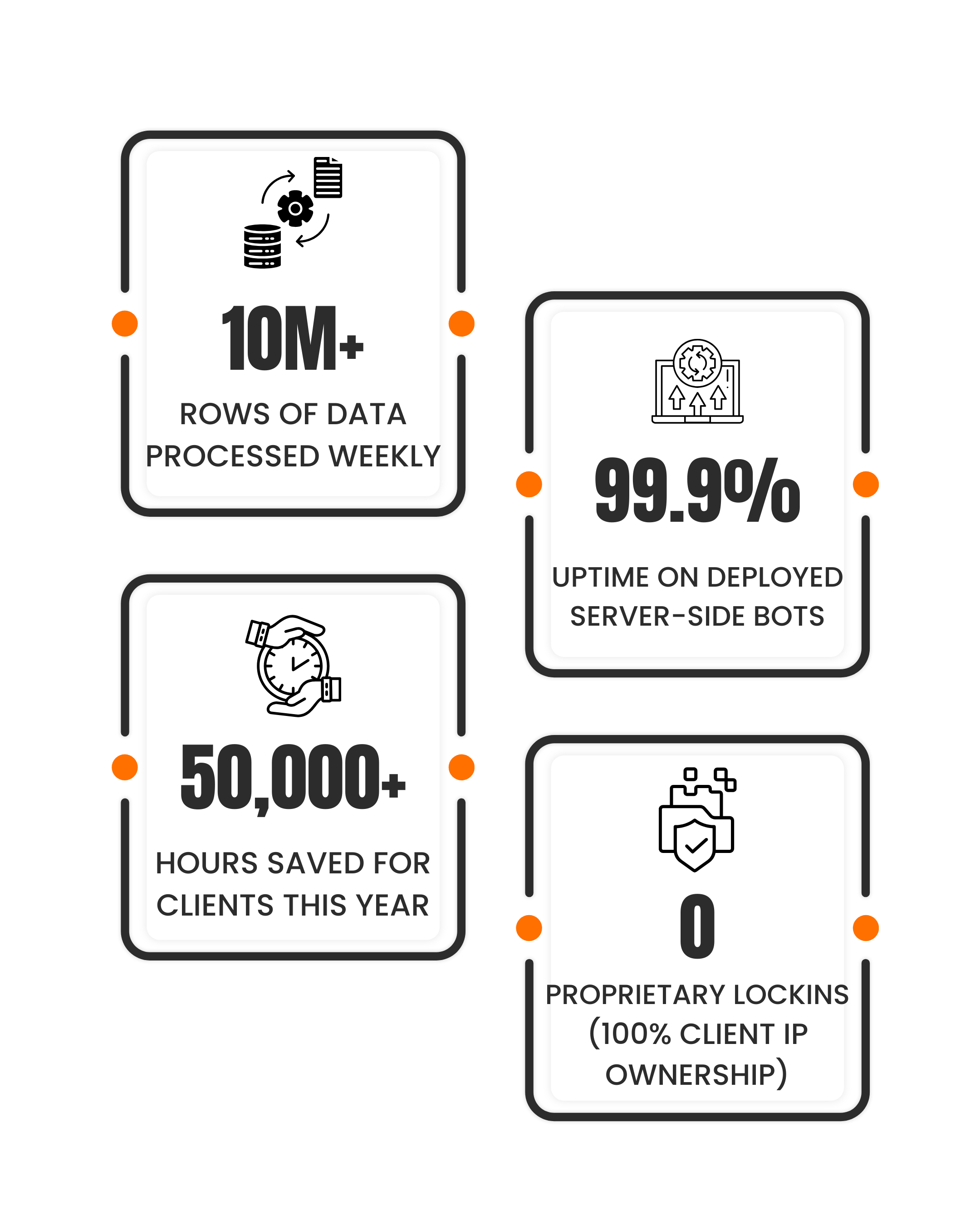 It is easy to build something fast. It is hard to build something that lasts. We prioritise long-term stability. Our scrapers are self-healing. Our bots are fault-tolerant. We build systems that run while you sleep.